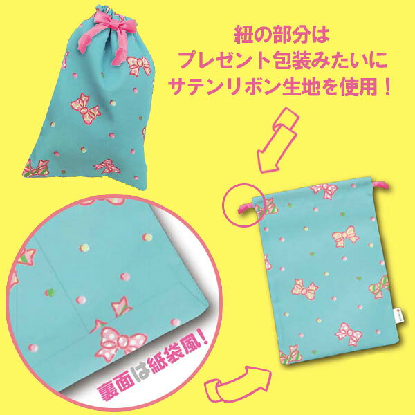 紐の部分は本物のプレゼント包装みたいなサテンリボンを使用しているのでとってもオシャレ! 使いやすいサイズの巾着だから何個あっても◎! サイズ:約160mm×235mm ※予約商品以外の商品を一緒にご購入いただいた場合、1月下旬以降の一括発送となります。